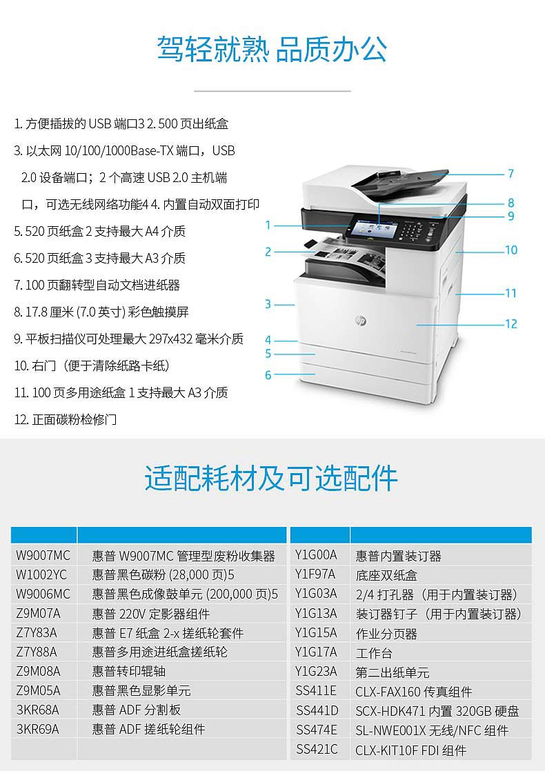 版本  :   黑白激光复印扫描一体机 复合机办公 自动双面 M72625dn标配
